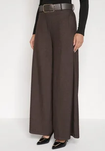 Brązowe Bawełniane Szerokie Spodnie Garniturowe z Wysokim Stanem i Paskiem Tusamia