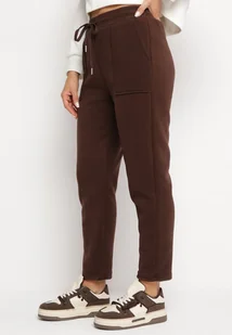 Brązowe Ocieplane Spodnie Bawełniane z Gumką w Pasie Ocuna