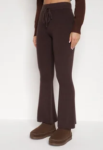 Brązowe Spodnie Dzwony z Dzianiny z Wiskozą Zetiva