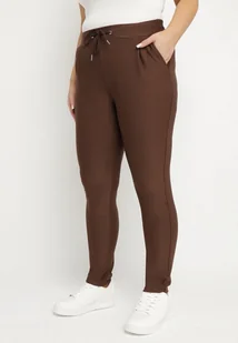 Brązowe Spodnie z Bawełną Wysokim Stanem i Wiązaniem Dannaria
