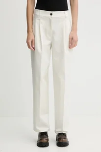 Calvin Klein spodnie damskie kolor beżowy szerokie high waist LV044D664G