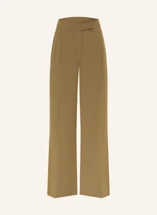 Wysoki stan. Proste nogawki. Zapięcie na guzik, haftkę i zamek błyskawiczny. Zakładki. Kanty. Boczne kieszenie wpuszczane. Kieszeń z wypustką z tyłu. Delikatny splot skośny. Lejący materiał