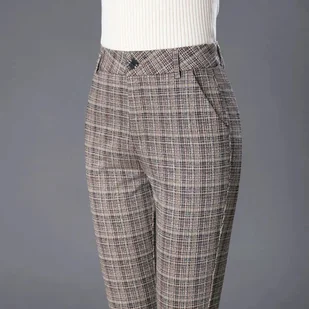 CECHY PRODUKTU: Spodnie z wysokim stanem Chinosy damskie Wzór w kratę Elegancki styl
