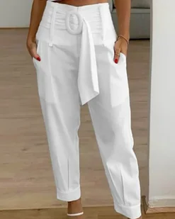 CECHY PRODUKTU: Spodnie damskie Ozdobny pas z przodu Lekki materiał Chinosy