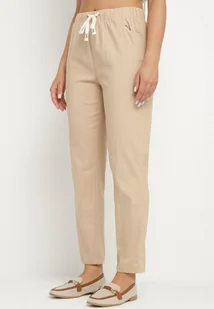 Ciemnobeżowe Bawełniane Spodnie z Wiązaniem Feltebia