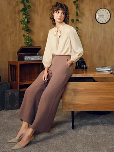 Ciemnobeżowe spodnie z szeroką nogawką