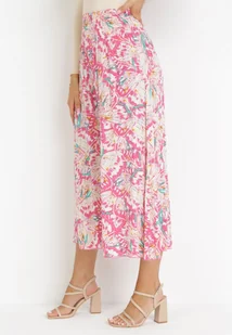 Ciemnoróżowe Szerokie Spodnie z Wiskozy w Fantazyjny Print Wilhelia