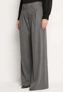 Ciemnoszare Spodnie Garniturowe z Wiskozą o Szerokim Kroju z Kieszeniami Filolena