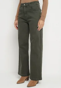 Ciemnozielone Bawełniane Jeansy o Szerokim Kroju Violine