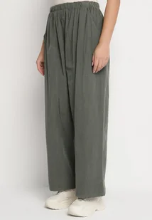 Ciemnozielone Szerokie Spodnie z Bawełny z Wysokim Stanem Florili
