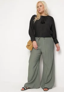 Ciemnozielone Szerokie Spodnie z Wiskozy z Kieszeniami Rowalle
