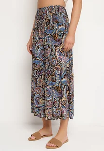 Czarne Bawełniane Spodnie Kuloty z Wzorem Paisley Tarrisa