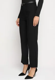 Czarne Klasyczne Spodnie na Suwak i Haftkę Ozdobione Paskiem Liloena