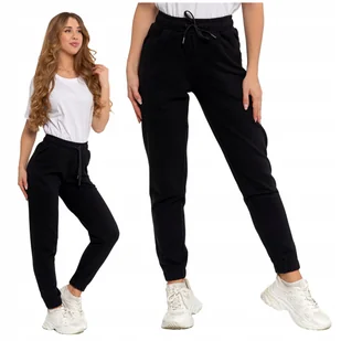 Czarne SPODNIE DAMSKIE Dresowe Gładkie z Kieszeniami i Ściągaczami MORAJ S