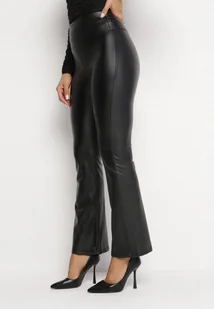 Czarne Spodnie Dzwony z Gumką w Pasie z Ekoskóry Arkani
