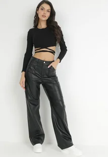 Czarne Spodnie Szerokie z Imitacji Skóry Ononi