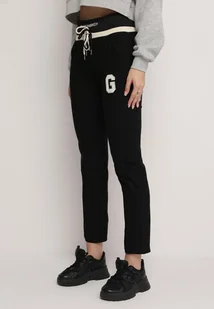 Czarne Spodnie z Szeroką Gumką w Pasie i Naszywką na Nogawce Kuian
