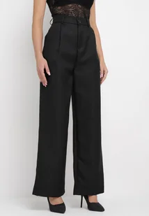 Czarne Spodnie z Wysokim Stanem i Szerokimi Nogawkami Ozdobione Metaliczną Nicią Calondra