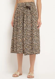 Czarno-Beżowe Szerokie Spodnie Typu Szwedy z Plisowanego Materiału z Gumką i Paskiem w Talii Hurefia