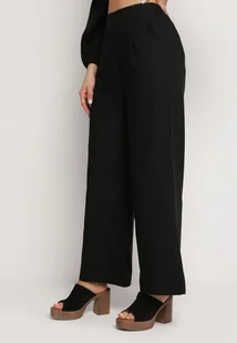 Czarne Szerokie Spodnie z Gumką w Talii z Lnem Araniells
