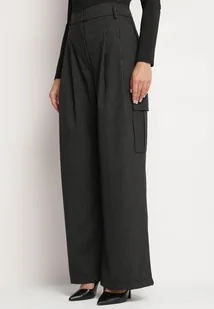 Czarne Szerokie Spodnie z Wiskozą o Garniturowym Kroju w Paseczki Ilirra