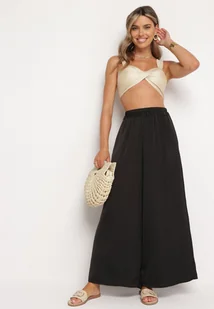Czarne Szerokie Spodnie z Wiskozy z Wysokim Stanem Rissalie