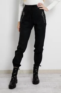 CZARNE WOSKOWANE JOGGERY Z WYSOKIM STANEM