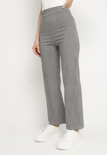 Czarno-Białe Szerokie Spodnie z Bawełną i Wysokim Stanem w Kratę Alisottia