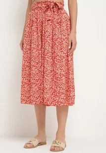 Czerwone Szerokie Spodnie Typu Szwedy z Plisowanego Materiału z Gumką i Paskiem w Talii Hurefia