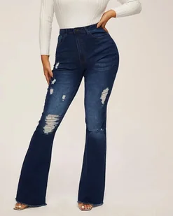 Damskie spodnie dzwony z dziurami - Ciemnoniebieski