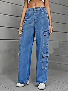 Damskie spodnie jeansowe bojówki - Niebieski M