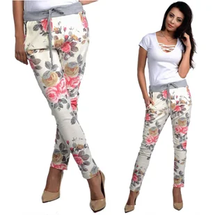 damskie Włoskie Spodnie w kwiaty bawełniane Baggy dresowe