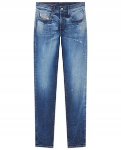 marka: Diesel opis: spodnie, 2019 D-STRUKT (slim fit, mid waist, slim leg) kolor: niebieski rozmiar: W32 L32 wymiary: szerokość w pasie 42 cm, długość 106 cm...