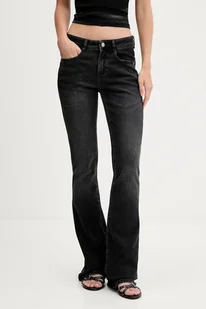 - Model z obniżoną talią i zapięciem na guzik i suwak. - Z przodu trzy wsuwane kieszenie. - Dwie wsuwane kieszenie na pośladkach. - Rozszerzana nogawka. - Ozdobnie sprany denim. - Szerokość w pasie: 35 cm. - Szerokość w biodrach: