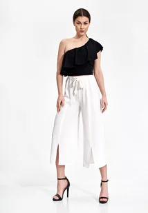 ELEGANCKIE spodnie damskie DZWONY 7/8 z wiązaniem białe S