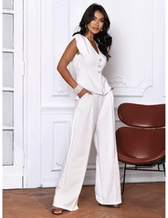 Eleganckie szerokie spodnie z kantem TEONA - białe