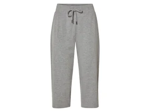 esmara® Spodnie 3/4 damskie z bawełną Opis produktu wspieramy zrównoważoną uprawę bawełny w Afryce przyjemny komfort noszenia dzięki wysokiej zawartości bawełny z wytrzymałej, ciężkiej dzianiny dżersejowej z bocznymi kieszeniami, gumką w pasie i sznurkiem optymalne dopasowanie i stabilność kształtu dzięki zawartości włókien wysokogatunkowego elastanu Lycra® czarny: ściągacze na nogawkach szary: z małymi rozcięciami po bokach Cechy produktu table{width:100%;}td{padding-right: 30px; padding: 0.5rem; border-bottom: 0.0625rem solid #e3e4e5;} tr: nth-child(odd) {background-color: #F2F3F4;} Kolory: szary; czarny Cechy: