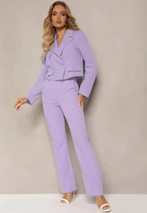 Fioletowe Garniturowe Spodnie z Wysokim Stanem i Szerokimi Nogawkami Abigaille