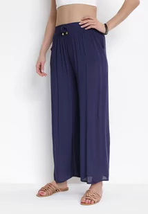 Granatowe Gładkie Spodnie z Gumką w Pasie i Szerokimi Nogawkami Alathera