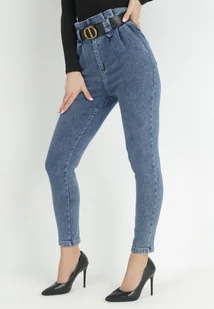 Granatowe Jeansy Mom Fit z Paskiem Humilia