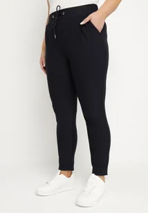 Granatowe Bawełniane Spodnie z Wysokim Stanem i Gumką w Pasie Zakończoną Troczkami Wedira