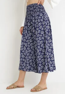 Granatowe Bawełniane Spodnie Culotte z Wysokim Stanem i Gumką w Talii w Boho Stylu Olovia