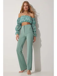 Trendyol Damskie spodnie z szerokimi nogawkami z wysokim stanem, Miętowy, 68