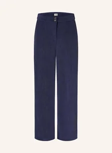 Wysoki stan. Proste nogawki. Zapięcie na guziki i zamek błyskawiczny. Elastyczny pas. Boczne kieszenie wpuszczane. Nakładane kieszenie tylne. Ze sztruksu. Elastyczny materiał