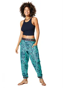 Lofbaz Damskie spodnie haremki 2 w 1 paw, Paw 1 Turkusowy Zielony, XL