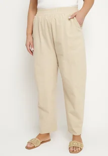 Jasnobeżowe Klasyczne Spodnie Bawełniane z Gumką w Pasie Olozi