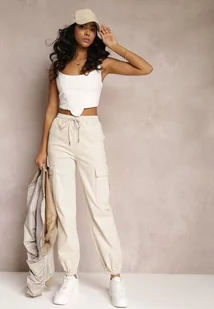 Jasnobeżowe Spodnie Joggery z Gumką w Pasie i Szerokimi Kieszeniami Amrita