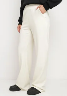 Jasnobeżowe Szerokie Spodnie z Wysokim Stanem i Gumką w Pasie Lobria