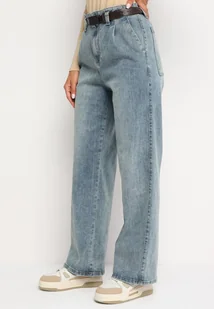 Jasnoniebieskie Jeansy z Bawełną o Szerokim Kroju z Wysokim Stanem i Paskiem Teriseteli