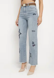 Jasnoniebieskie Jeansy z Szerokimi Nogawkami i Ozdobnymi Haftami Silinnga